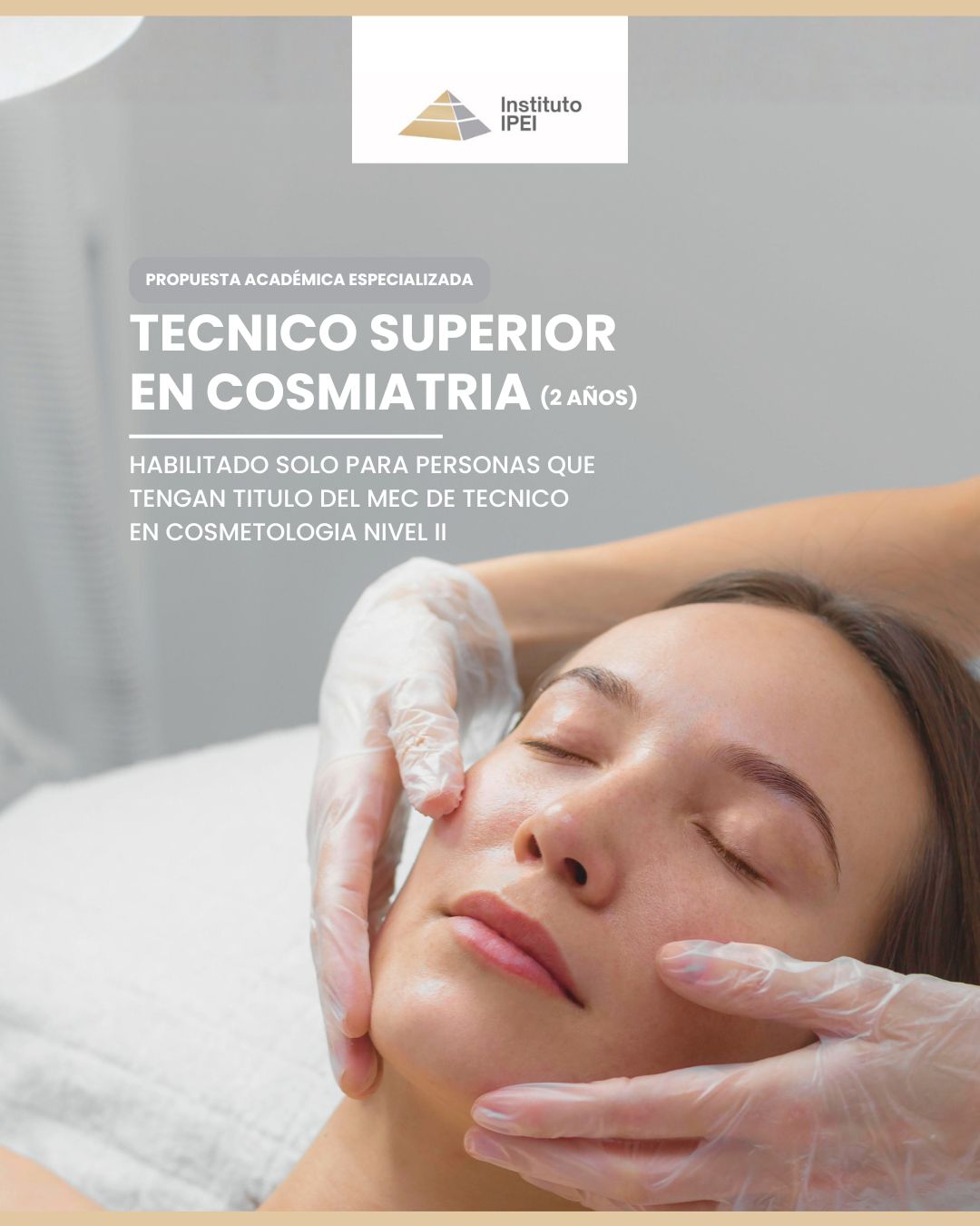 Técnico Superior en Cosmiatría es una carrera orientada a la formación avanzada en el cuidado y tratamiento de la piel, integrando conocimientos científicos y prácticos en aparatología estética, tratamientos especializados y protocolos profesionales, preparando al alumno para intervenir con criterio, seguridad y alto nivel en el área estética y dermocosmiátrica.